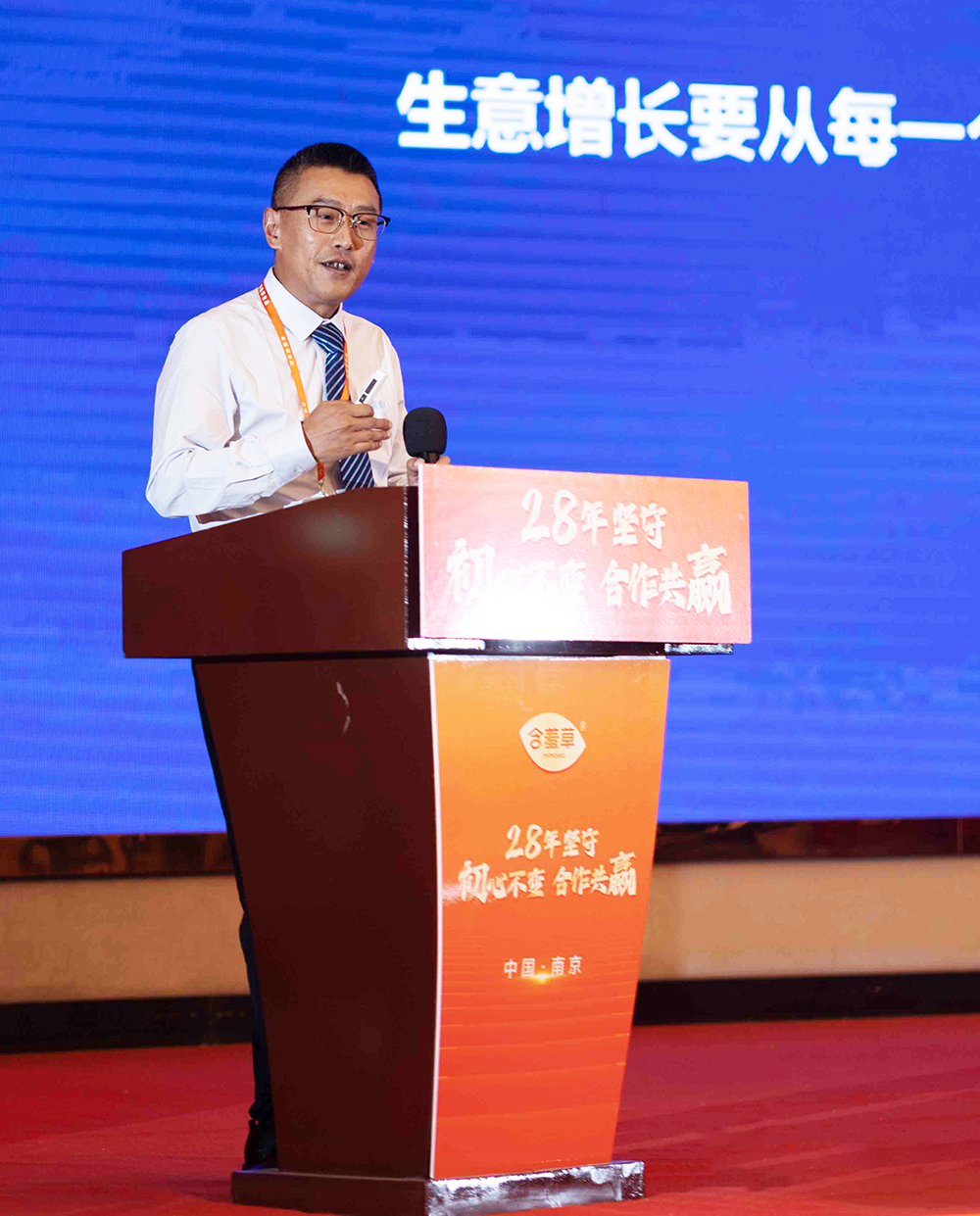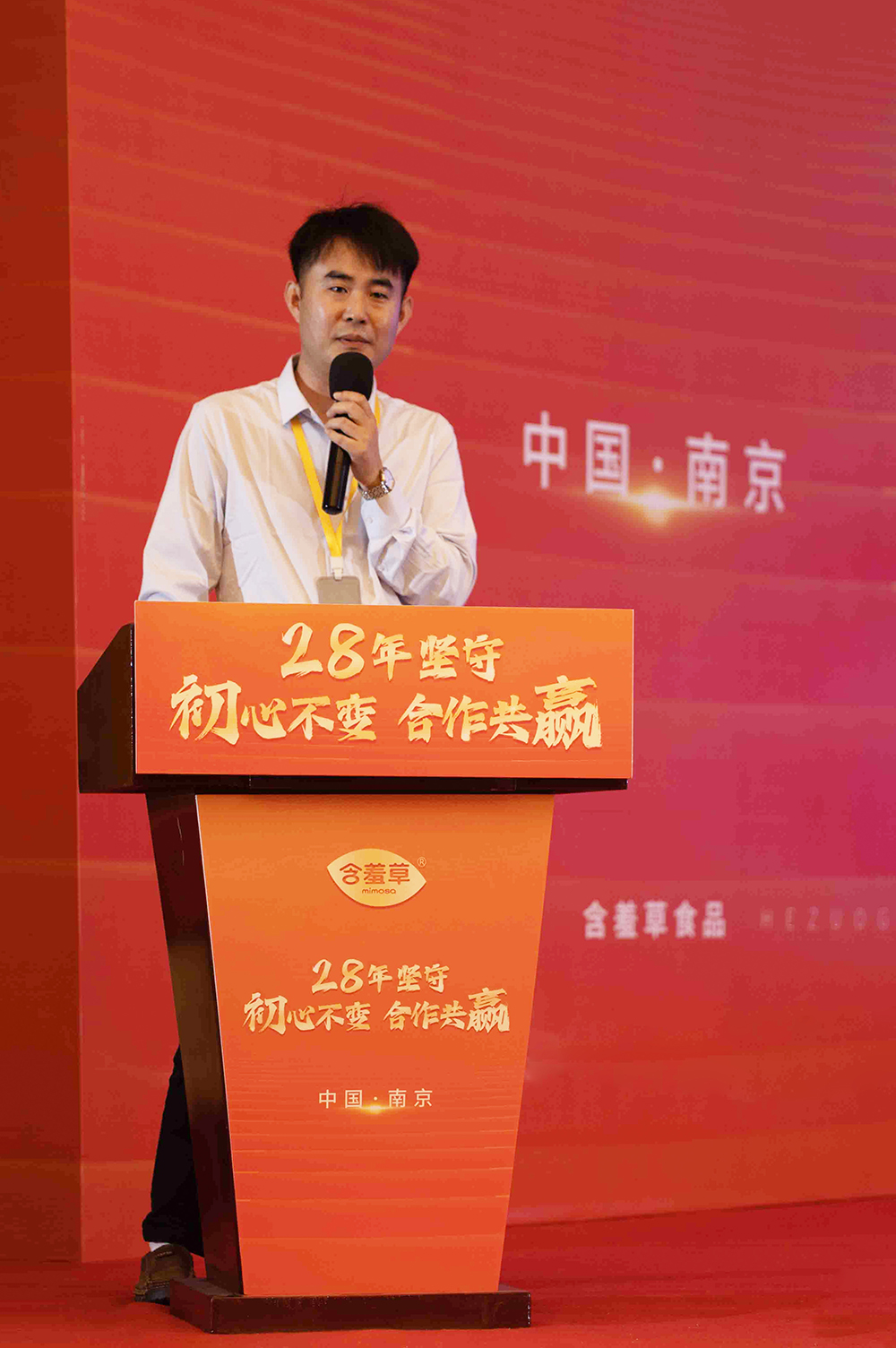 首先由含羞草食品董事長王健坤先生進行開幕致辭,他代表含羞草食品對全國經銷商的到來表示由衷的感謝,未來,含羞草食品將持續高研發投入,把牢產品質量,提升產品競爭力,讓經銷商伙伴能夠更有底氣、更有動力,共贏美好未來!
